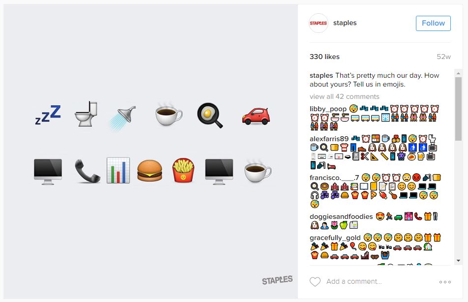 Staples manages to be the accessible but professional business by integrating emojis into their posts in a relevant way: