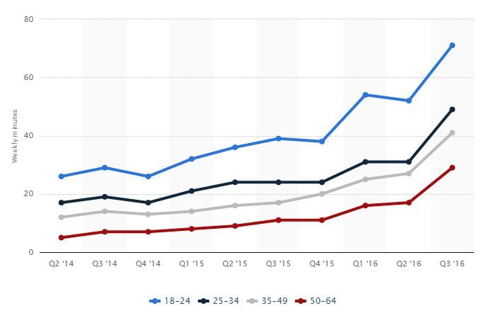 Weekly time spent watching video content on smartphones: